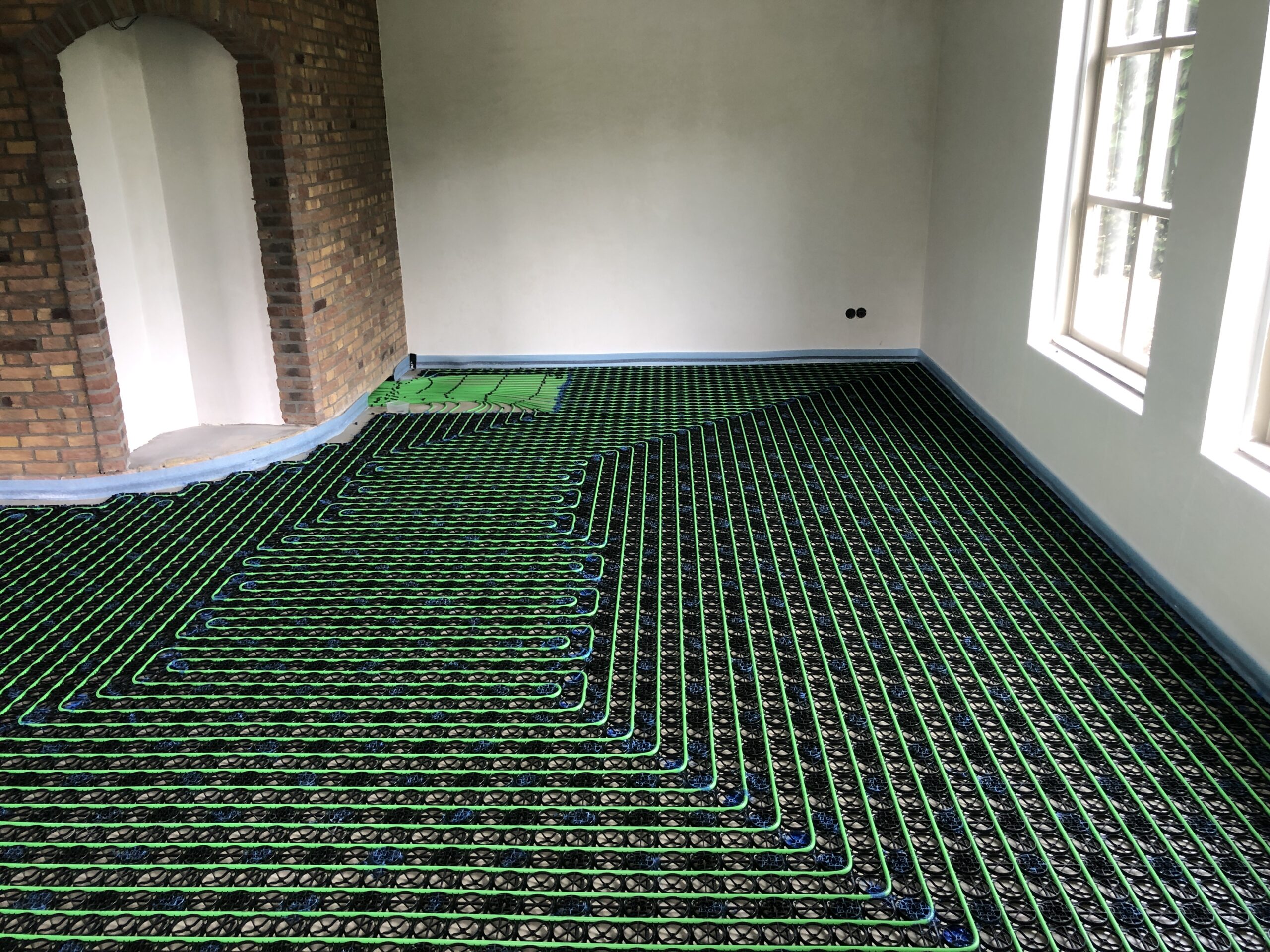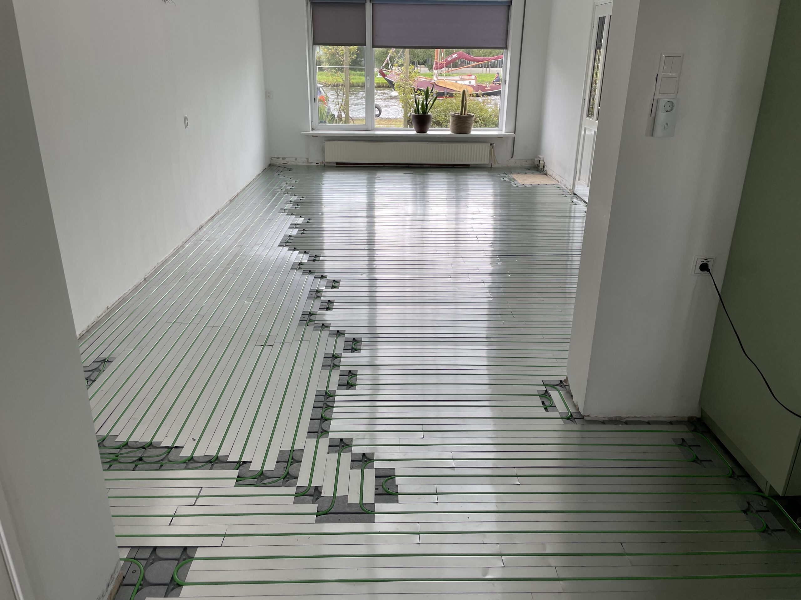 Natbouw vloerverwarming bestaat uit verwarmingsbuizen die worden vastgelegd in bijvoorbeeld matten en ingestort in een natte afwerklaag, zoals zandcement of egaline. Dit zorgt voor een stevige vloeropbouw met een gelijkmatige warmteafgifte. Houd rekening met droogtijd voordat de eindafwerking kan worden aangebracht.